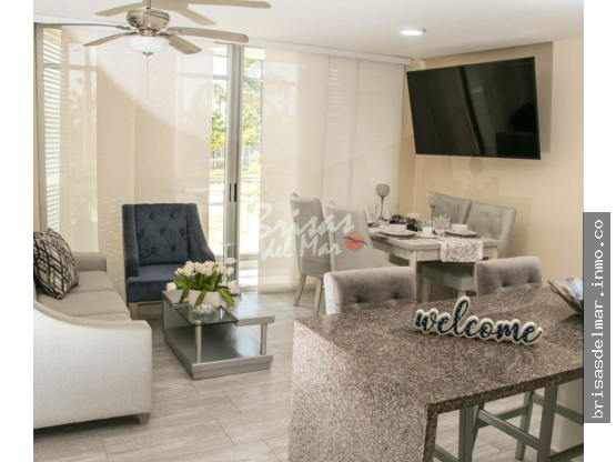 Pesos ColombianosSe renta hermoso apartamento amoblado, totalmente equipado con aires acondicionados, blackout en sus ventanas, con excelente acabados, tiene una cocina moderna, 2 habitaciones, sala-comedor, amplio balcón, 2 baños y zona de lavandería. Está ubicado en Serena del mar, rodeado de zonas residenciales y turísticas como lo son las playas de Manzanillos, que estána solo minutos de su posición.